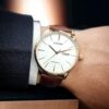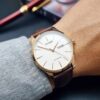 Dial trắng trẻ trung kết hợp cùng các chi tiết kim cọc số mạ vàng sang trọng