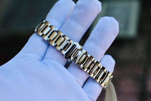 -Viền mỏng cách điệu 2 khấc vát, bên trong mặt số hình oval độc đáo. Kim Dauphine và cọc số 6 & 12 là chữ số La Mã cổ điển, các cọc số còn lại đính 10 viên kim cương cho vẻ đẹp quyến rũ .