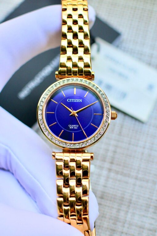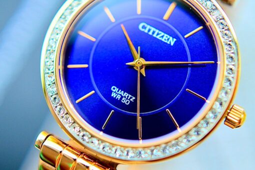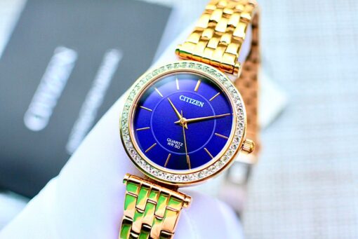 Màu sắc quyến rũ với tone rose điểm thêm mặt xanh tạo nên phong cách quyến rũ – Citizen ER0213-57L được thiết kế sang trọng, viền đính đá swarovski bắt mắt- Phù hợp cho mọi công việc từ đi làm đến đi dự tiệc, với thương hiệu đến từ Nhật Bản bền bỉ, trẻ trung