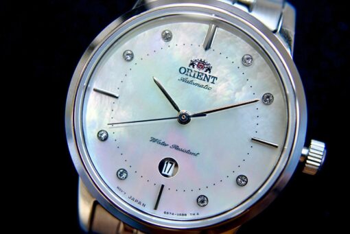 – Kim chỉ được thiết kế tinh tế,vạch số được trang trí bằng pha lê nổi bật trên nền số trắng xà cừ nhẹ nhàng sang trọng.