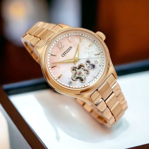 Citizen Automatic PC1017-61Y Dây Sắt Vỏ Vàng Hồng Mặt Hồng Sapphire