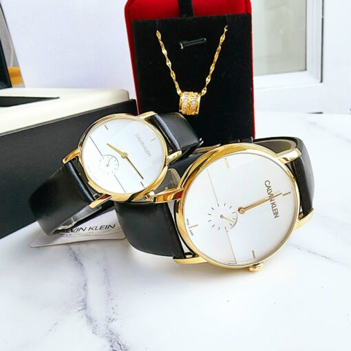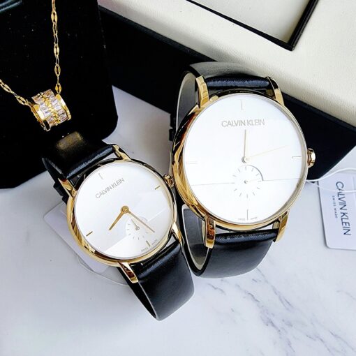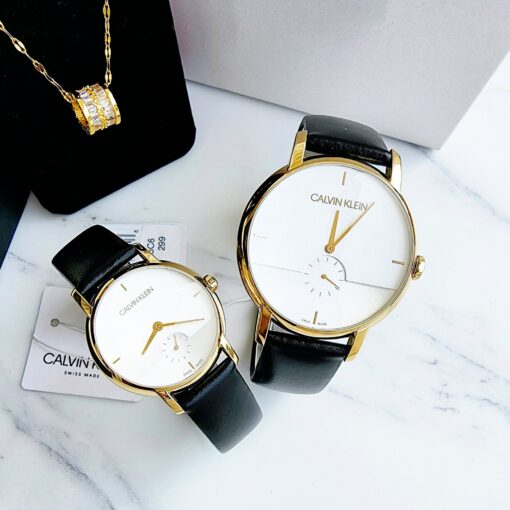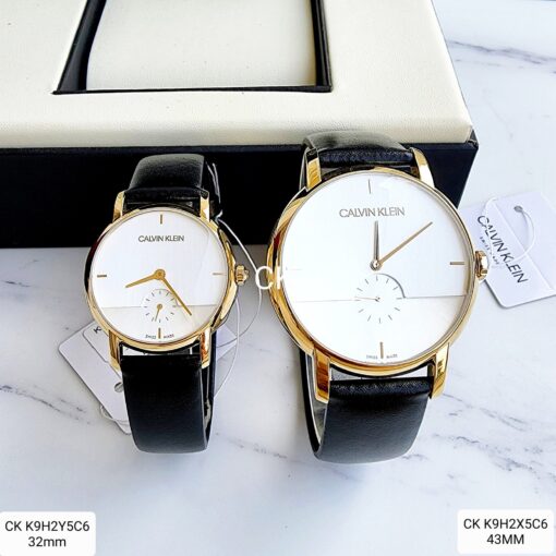 Đồng Hồ Cặp Calvin Klen K9H2Y5C6 K9H2X5C6 Dây Da Vỏ Gold