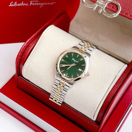-Mặt xanh lá siêu hot hit, dây thép mắt nhỏ với đường chỉ mạ gold tạo điểm nhấn