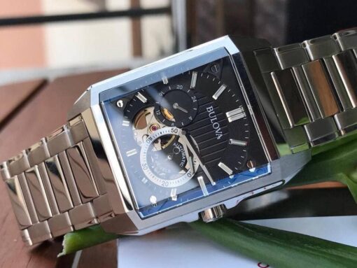 Đồng hồ Bulova 96A194 nổi bật với đồng hồ kiểu dáng vuông, với mặt kính Sapphire mặt số với thiết kế lộ ra 1 phần của bộ máy cơ đầy mạnh mẽ, dây đeo bằng thép không gỉ màu bạc tăng thêm vẻ nam tính.