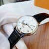 Vành đồng hồ và 12 cọc số vuông vức được sơn phủ sắc vàng ấm áp nổi bật giữa “màn đêm đen” bao phủ toàn mặt số.