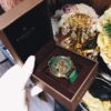- Vỏ thép không gỉ rắn chắc với vòng trên cùng được mạ vàng hồng, mặt số màu trắng, kim và chữ số bằng vàng hồng