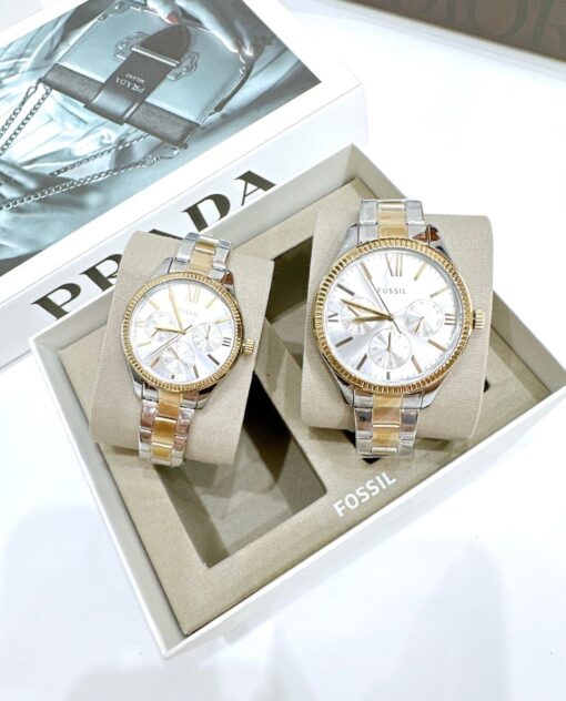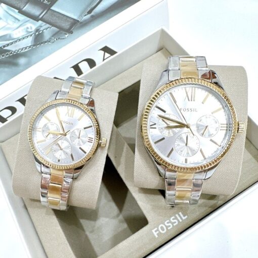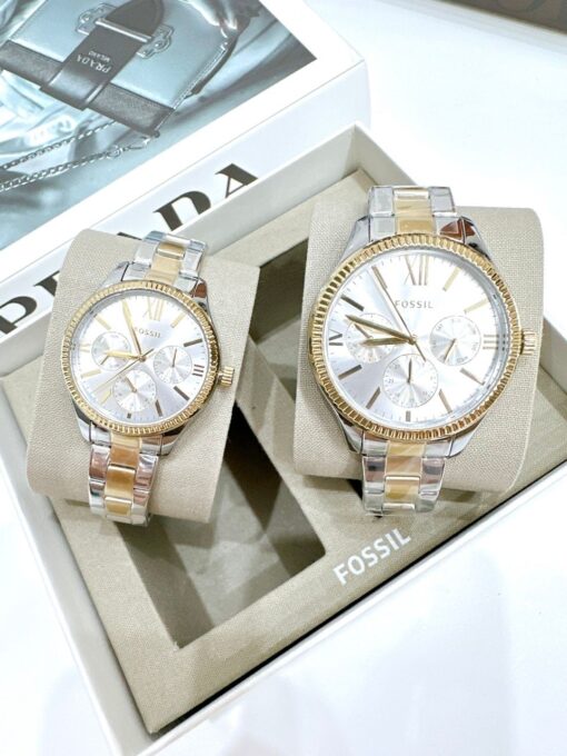 Fossil Quartz BQ2737 His and Hers Multifunction Two-Tone Stainless Steel – Đồng Hồ Cặp