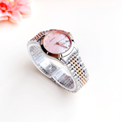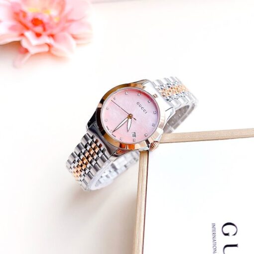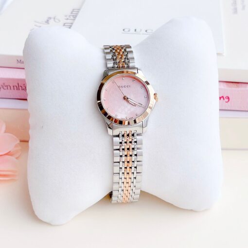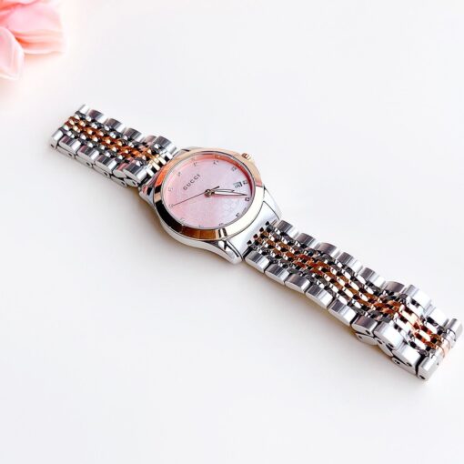 Dial khảm trai, cọc số đính kim cương siu sang chảnh. Tone demi rose thời thượng