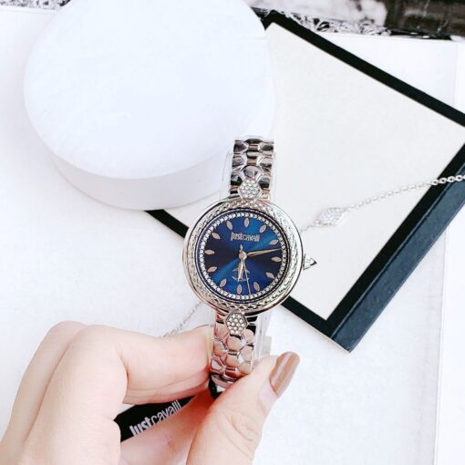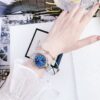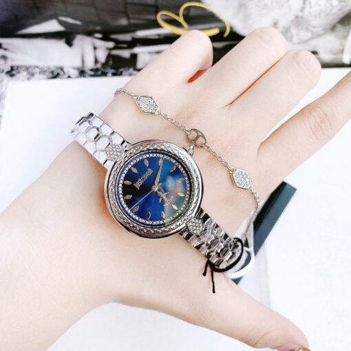 kèm lắc tay xinh xắn. Mặt xanh thẫm viền đá cùng chi tiết chạm khắc tinh tế quanh viền