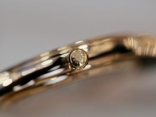 Toàn bộ phần vỏ được chế tác từ vàng 18K rose gold nguyên khối.