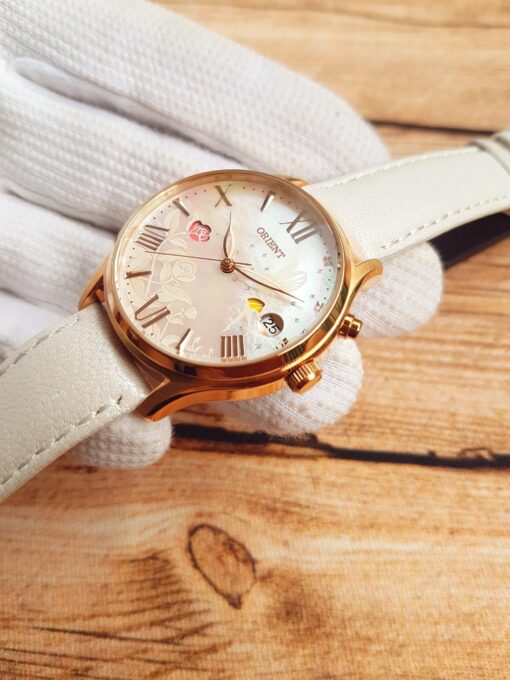 Với mặt số khảm trai, tạo nên vẻ đẹp kiêu sa cho phái nữ chính là điểm nhất của chiếc đồng hồ này. Các họa tiết trên đồng hồ thay đổi màu sắc theo từng ngày
