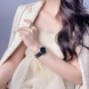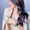-Da đen khóa gập,vỏ thép không gỉ cao cấp sáng bóng, núm đính đá siêu sang
