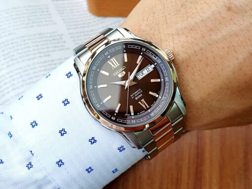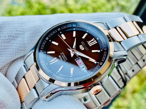 Đồng hồ Seiko 5 SNKP18J1 chính hãng là dòng đồng hồ automatic có nhiều sự cải tiến nhất trong thiết kế. Nét nổi bật của chiếc đồng hồ Seiko chính hãng này mang lại chính là màu mặt của chúng. Một màu nâu đất sang trọng, đặc biệt, kết hợp cùng màu vàng hồng đầy kiêu hãnh đã mang đến 1 tuyệt tác hoàn hảo tạo ra phong cách hiện đại, độc đáo và mạnh mẽ cho các quý ông.
