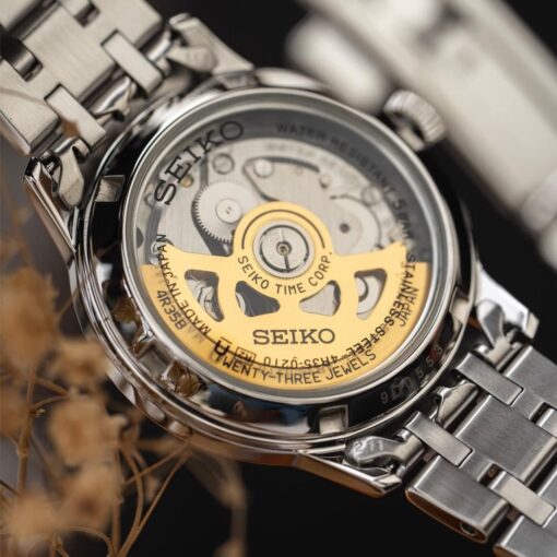 Máy Automatic 4R35B 23 chân kính, có trang bị tính năng lên cót tay giúp người dùng chủ động trong việc nạp cót hơn. Đây cũng là bộ máy có tính ổn định, độ bền cao nên còn được gọi là “máy ngựa thồ” và thường được S.e.i.ko sử dụng trong các sản phẩm cao cấp của mình.