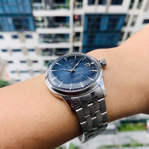 Model thu hút và đánh gục ngay từ cái nhìn đầu tiên bởi màu xanh Dial cực bắt mắt. Màu xanh này càng được làm nổi bật hơn bởi thấu kính cong của model. Kim và cọc số được thiết kế tinh tế, trau chuốt, mang đậm nét #Seiko.