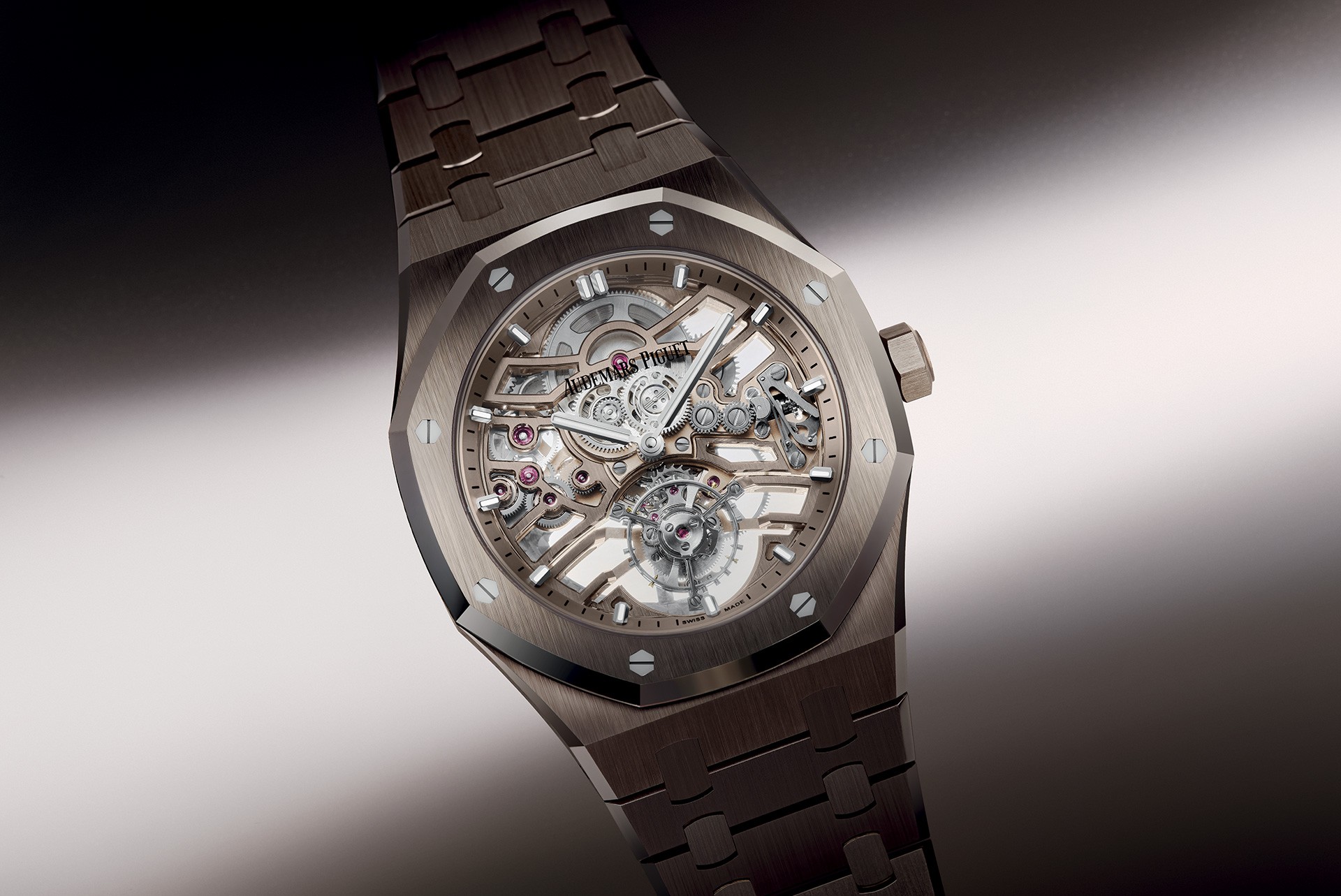 Audemars Piguet, Đồng hồ Royal Oak Selfwinding Flying Tourbillon Openworked bằng vàng cát 41 mm.